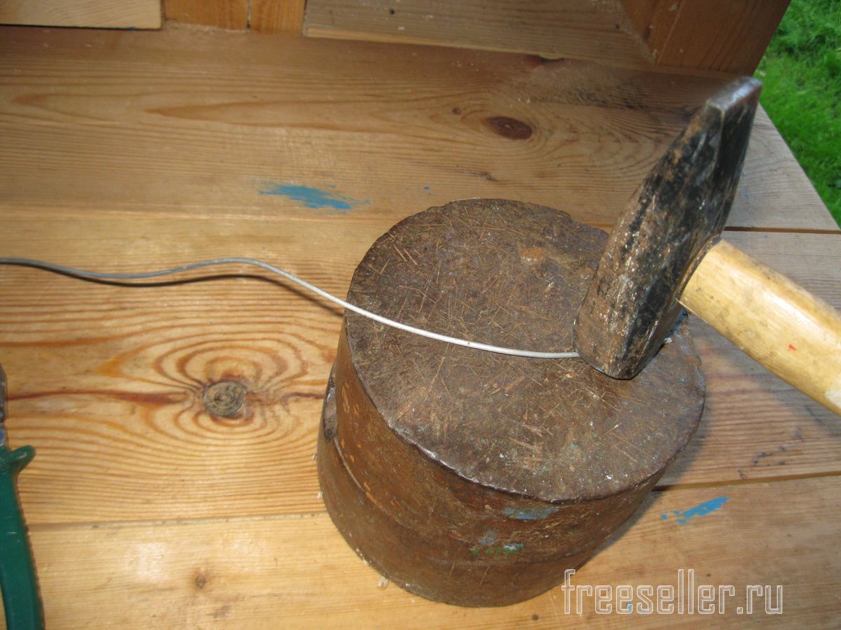 Для начала, я выпрямил эту проволоку при помощи молотка и наковальни.