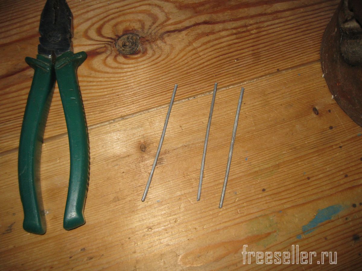 Затем разрезал эту проволоку на три части – заготовки для трех будущих крючков.