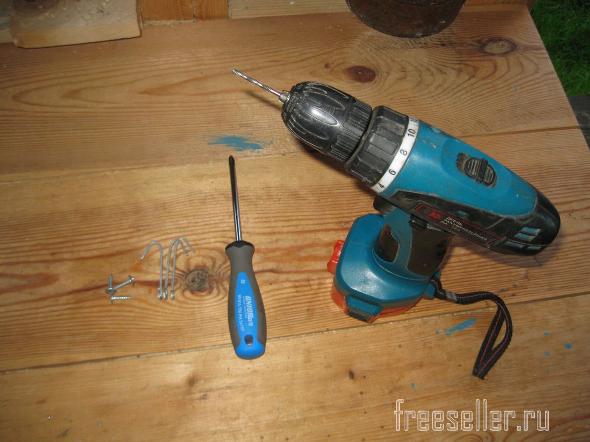 Для этого мне понадобились сами крючки, аккумуляторная дрель-шуруповерт, сверло по металлу диаметром 2,8 мм, крестовая отвертка РН2, а также три шурупа с прессшайбой, диаметром 4,2 мм.