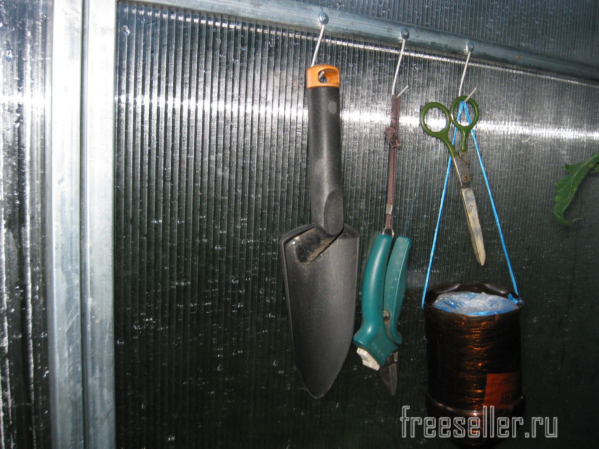 Благодаря этим крючкам, необходимый для работы в теплице инструмент, всегда будет под рукой, его удобно будет хранить и использовать.