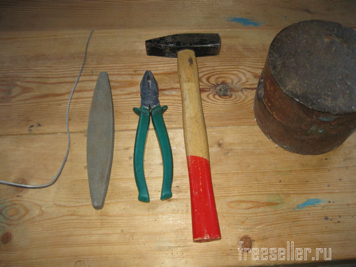 Для этого мне понадобились, кусок проволоки диаметром около трех миллиметров, молоток с наковальней, пассатижи и абразивный брусок.