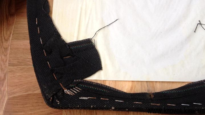 Прибиваем мебельную ткань ручным степлером или профессиональным, если есть.