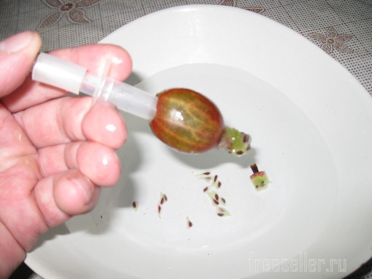 Ну а затем, также провел испытания этого устройства, удаляя зернышки из крупных ягод крыжовника.