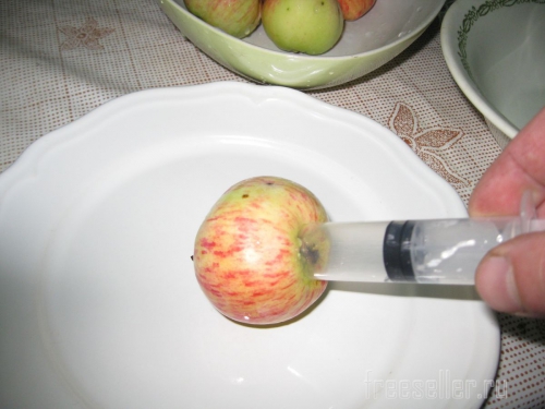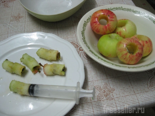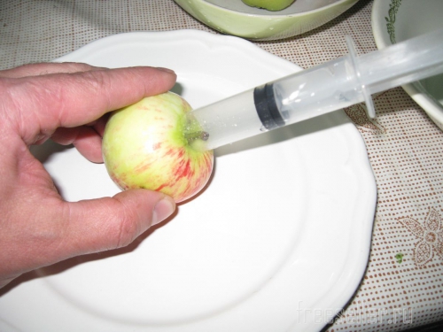 В итоге оказалось, что такое устройство из шприца, сделанное на скорую руку, довольно эффективно и удобно, так что его вполне можно применять для чистки яблок.