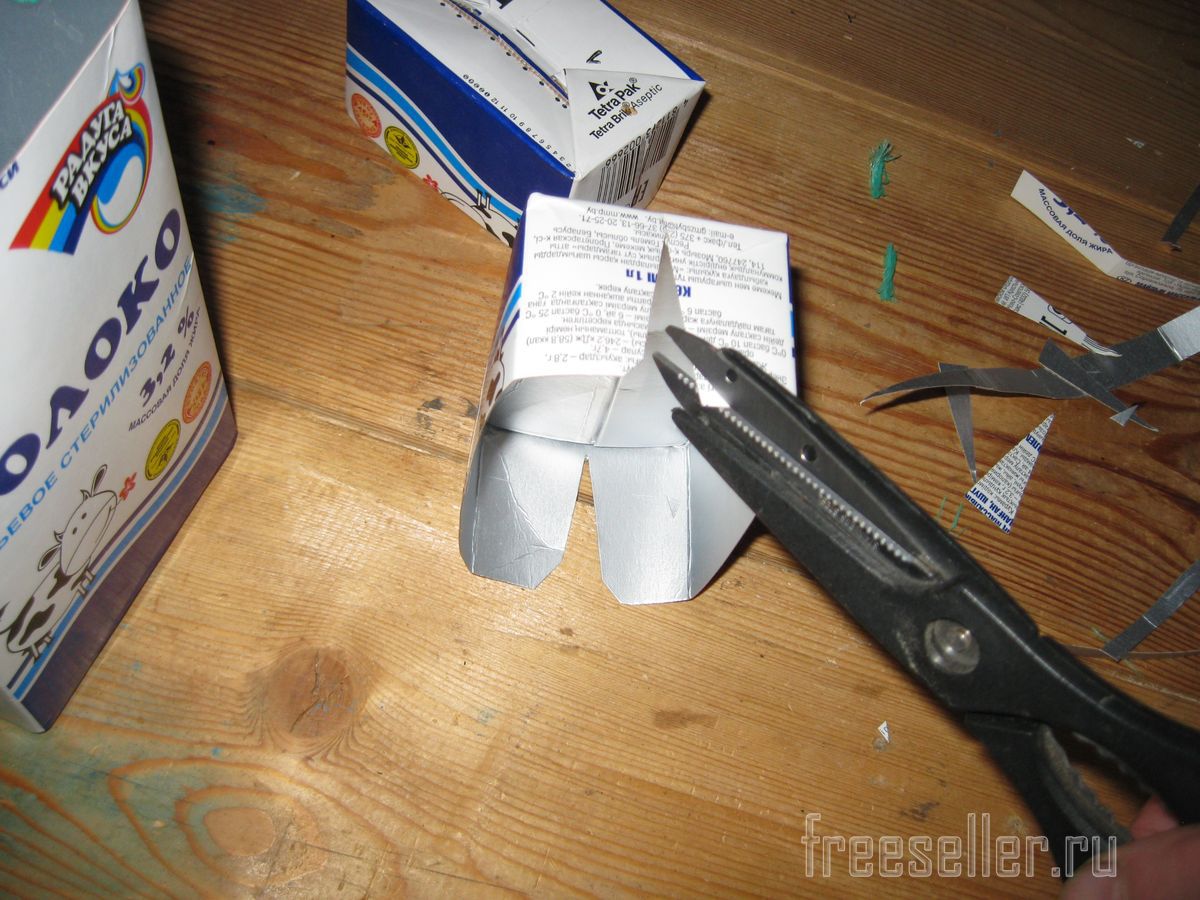 Из двух оставшихся молочных пакетов, я сделал крышки.