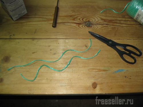 Затем отрезал два небольших кусочка шпагата.