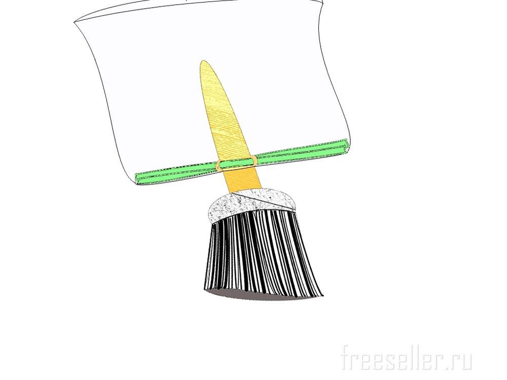 Трудно покрасить что-либо дома или на даче, хотя бы пару раз не уронив кисть в банку с краской. Она выскальзывает из рук, особенно, когда красишь, надев на руку пакет, чтобы не запачкаться. В одной старой книжке полезных советов по домоводству мы подсмотрели дельную подсказку на этот случай. Проиллюстрировали её нашими рисунками и спешим поделиться ею с вами. Автор книги советует смастерить ограничитель на кисть из прищепки, расчёски или заколки для волос. Это хорошо для маленькой кисточки, которую при рисовании роняют в стакан с водой. А при окраске, например, стены или пола можно воспользоваться вот таким приспособлением. Для его изготовления нам понадобятся два жёстких отрезка пластика, резины или провода средней толщины, немного проволоки и ножницы или кусачки.