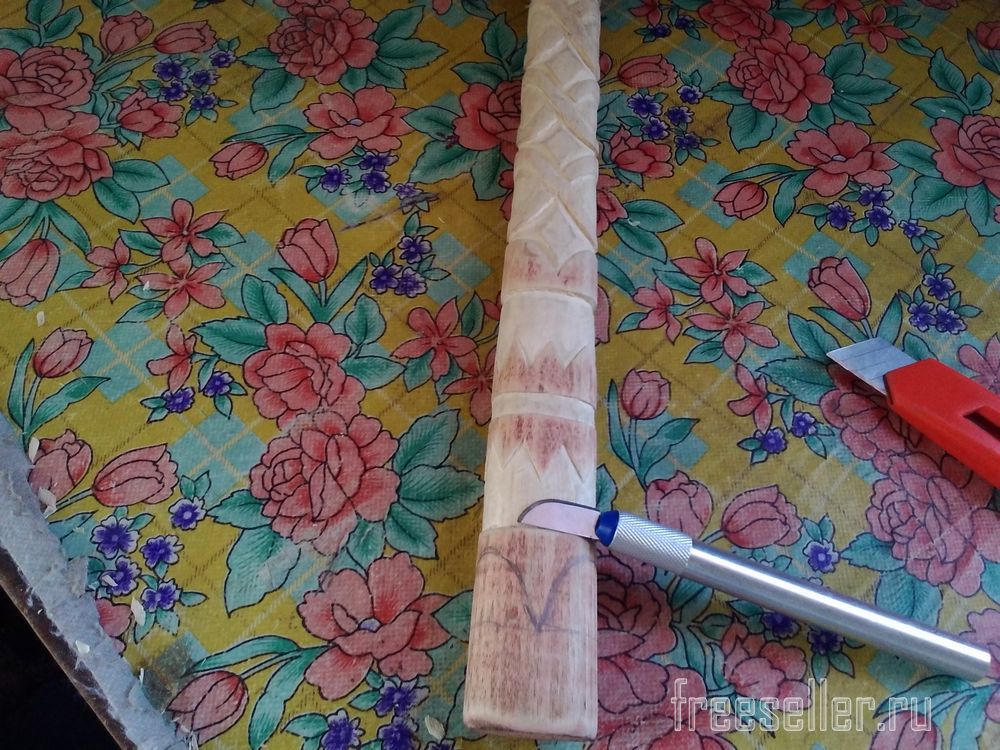 Далее по узору начал вырезать резцами и канцелярским ножом.