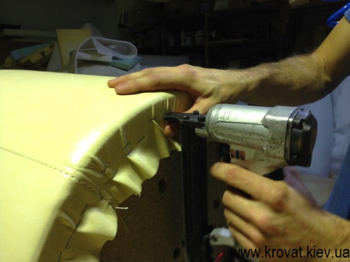 Синтепон - нужен для сглаживания неровностей, продления срока службы поролона, легче натягивать ткань.