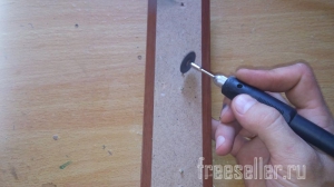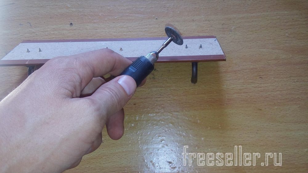 Так как саморезы немного длиннее, чем заготовка от ключницы, то кончики их вышли наружу и что бы все было гладко, нужно при помощи бормашинки постачивать их.