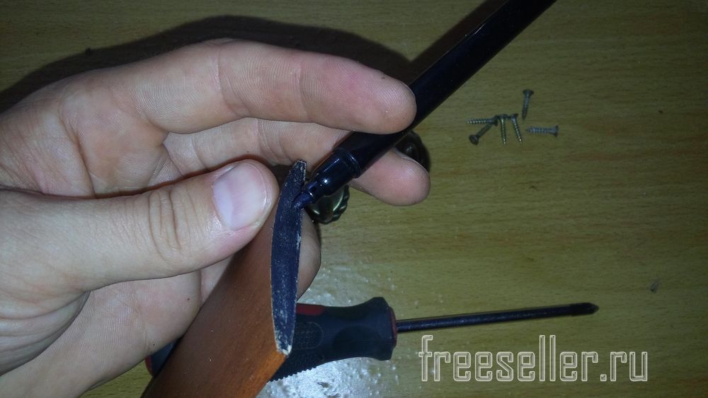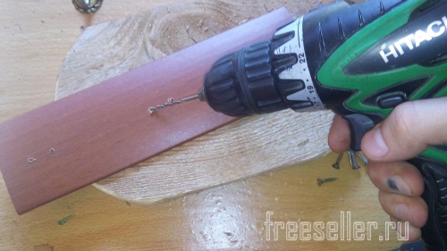 Теперь при помощи сверла и шуруповерта проделываем небольшие отверстия по разметкам, чтобы, когда будем закручивать саморезы, заготовка не раскололась.