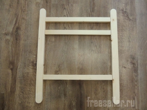 Сначала была собрана нижняя часть, размеры брал на свое предпочтение, 2 вертикальных рейки (диаметр 4*2 см), и 3 поперечных (диаметр 3*2 см).