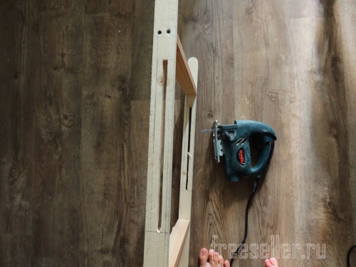 Далее на вертикальных планках сделал прорези, от поперечной планки до поперечной, на фото немного не так, так как переделывал.