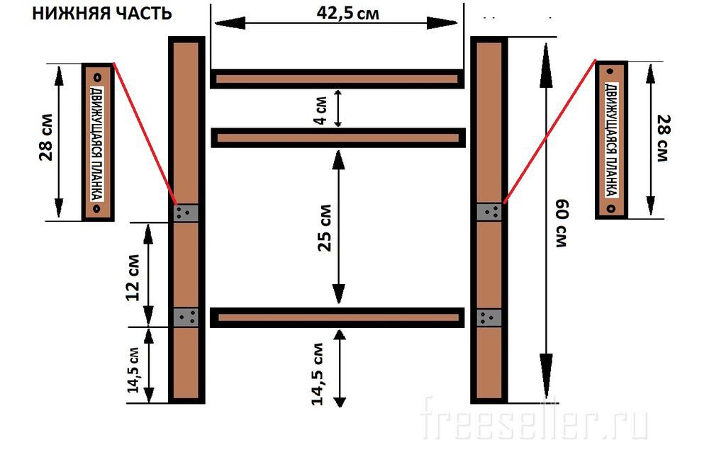 2 поперечины 42,5 см, скреплял саморезами.