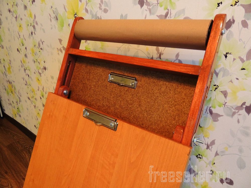 Разматывается рулон, загибается в нижней части и можно рисовать,крепление для бумаги буду еще дорабатывать.