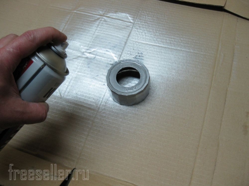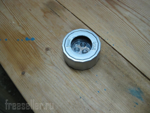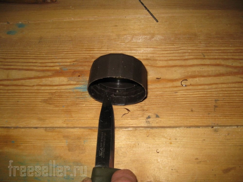 Затем ножом срезал внутреннюю резьбу на крышке для того, чтобы можно было легко вставлять туда круглый светильник.