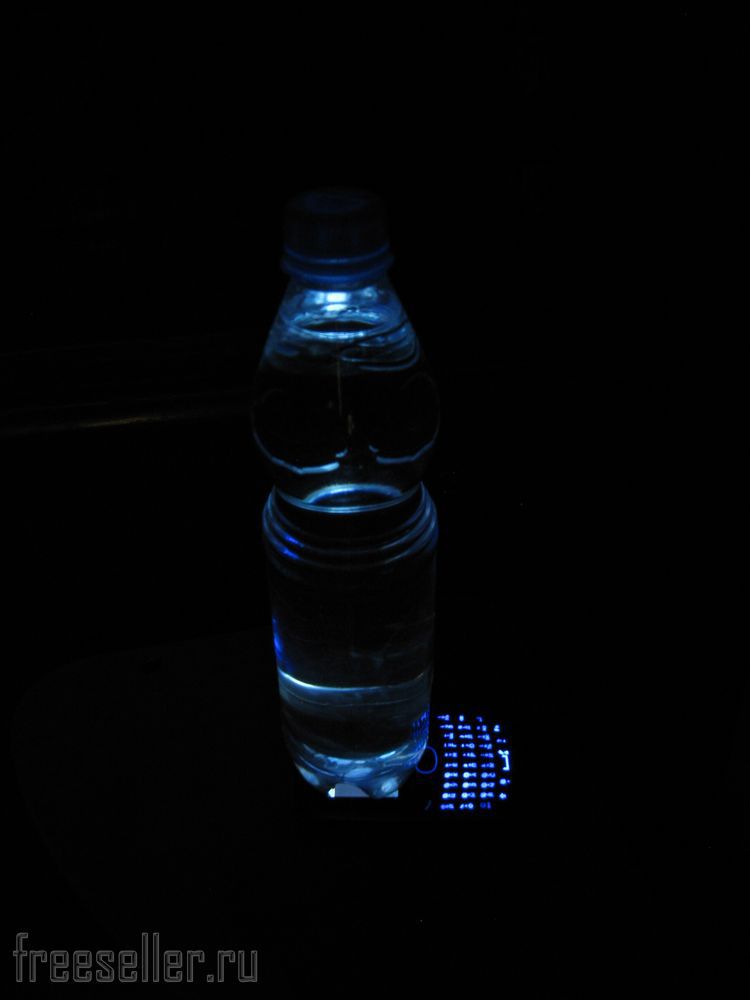 Для этого нужно просто поставить прозрачную пластиковую бутылку с чистой водой, на мобильный телефон или смартфон с включенной подсветкой. В результате свет, от подсветки телефона рассеиваясь в воде, будет равномерно светить все стороны от бутылки и таким образом худо-бедно освещать помещение.