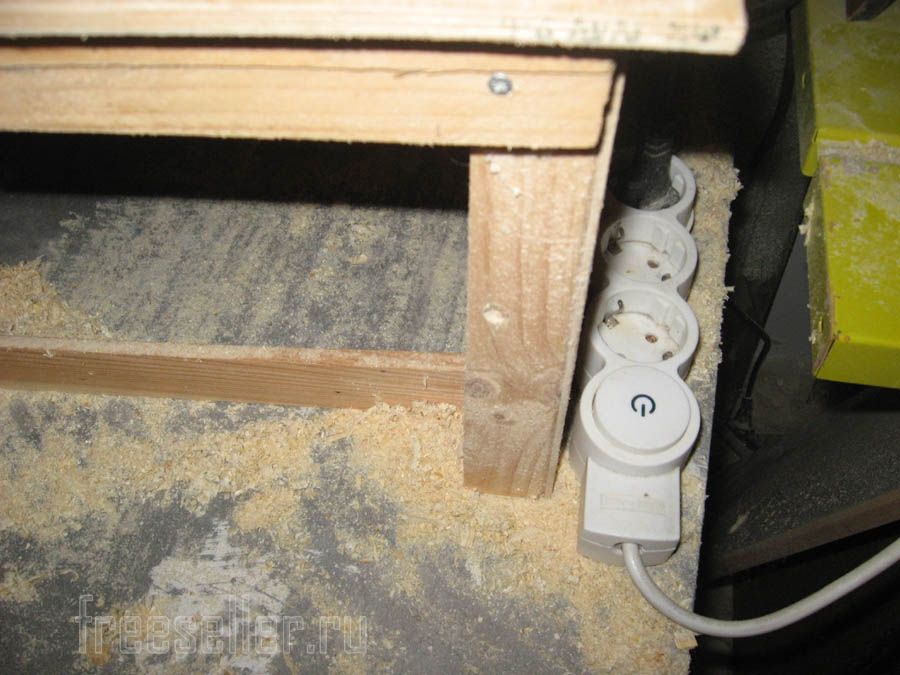 Инструмент фиксируете в станину включенным, а провод втыкаете в пилот с кнопкой. И этой кнопкой осуществляете включение/выключение станка. Она, как правило, больше кнопки лобзика, подсвечена, и можно расположить в удобном месте.