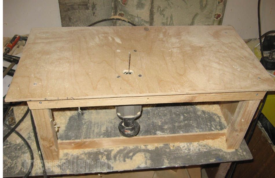 Лобзик крепим к станине снизу, просверлив 4 отверстия.