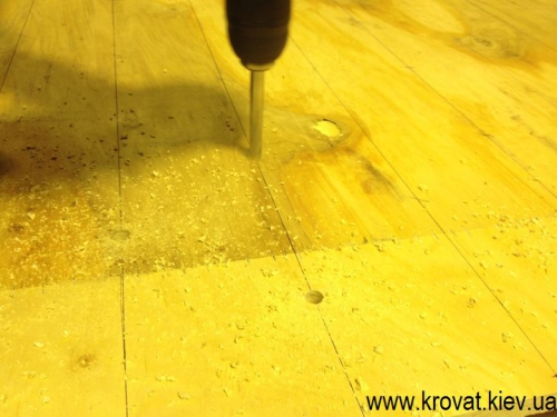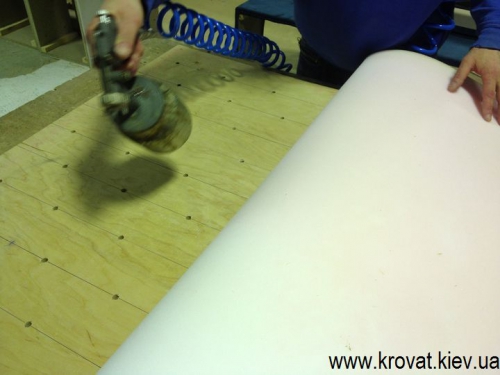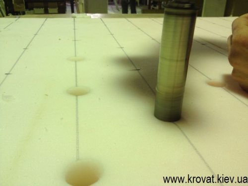 Размечаем поролон, как и фанеру, чтобы отверстия совпадали.