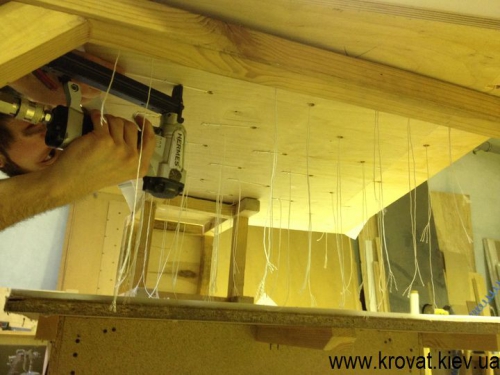 Нити прибиваем с обратной стороны степлером или пневмопистолетом.