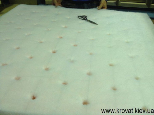 Обклеиваем синтепоном для скольжения материала и выравнивания неровностей и складок. Можно обойтись и без него.