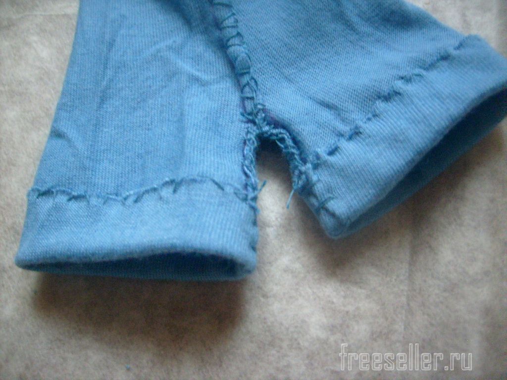 4. Отворачиваем припуски на подгибку штанин и вручную пришиваем их с изнанки, натягивая ткань.