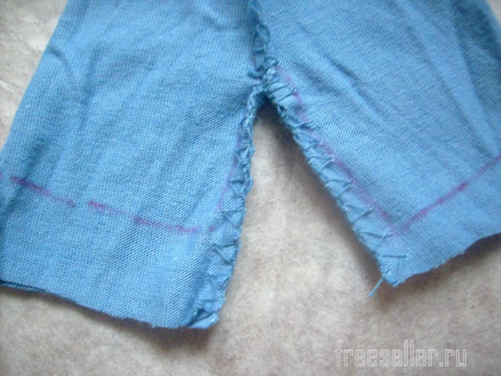 Складываем изделие, совместив готовые швы. Единым швом сшиваем шаговые срезы.