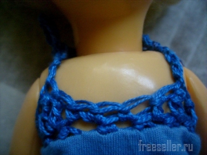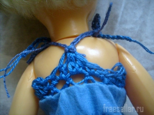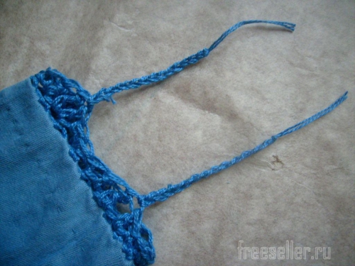 6. Спереди вывязываем из зубцов каймы две бретельки - цепочки из воздушных петель.