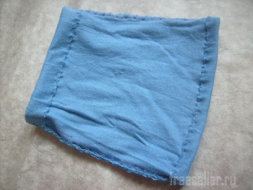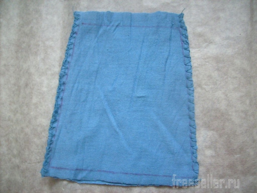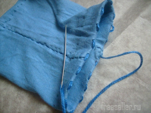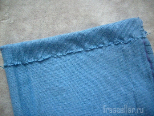 5. По сгибу верхнего припуска прокладываем шов пряжей "ирис".