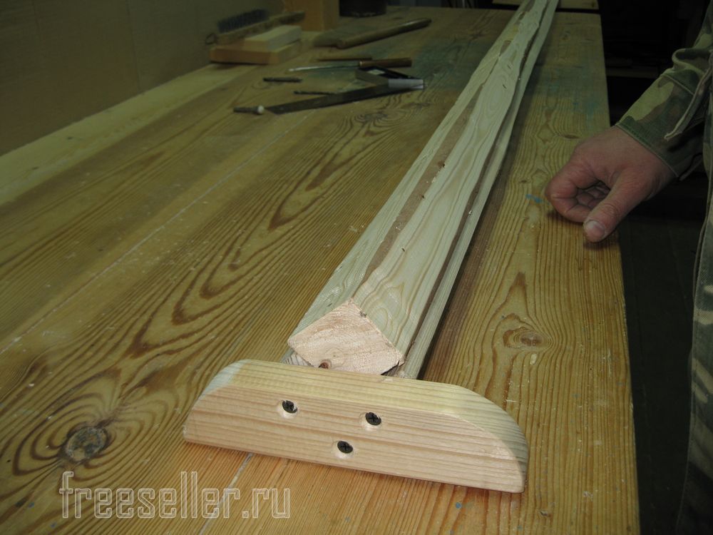 В самой же задней части приспособления, мы сверлим с каждой стороны по два отверстия под шурупы.
