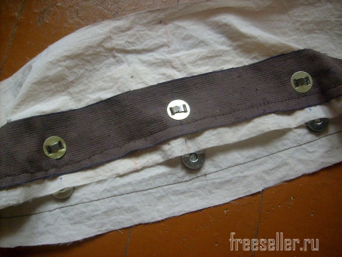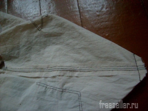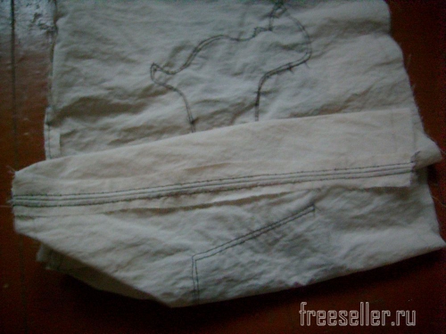 5. Сшиваем детали из плащёвки по нижнему срезу. Припуски разглаживаем и пристрачиваем.