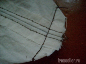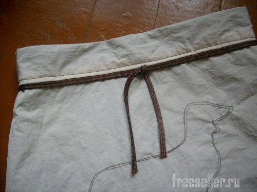 9. Отрезаем фрагмент шнура нужной длины. Пристрачиваем его под обтачкой по кругу.