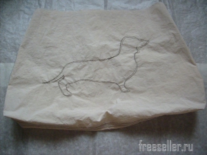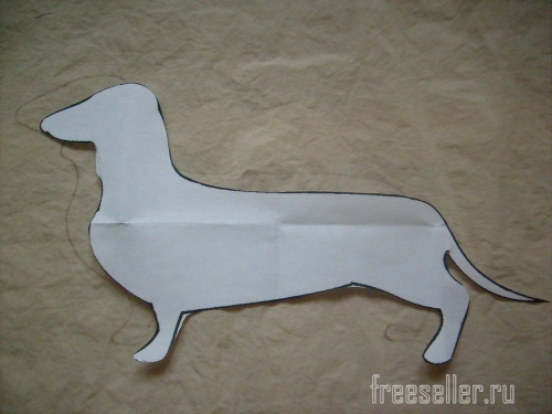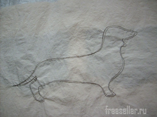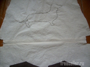 3. На одну из деталей верха наносим рисунок. Обводим шаблон таксы.