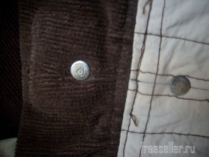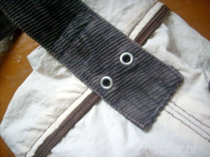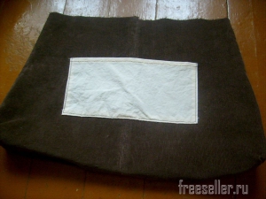 Дважды подвернув верхний срез, пристрачиваем его. По разметке пришиваем карман в одной из вельветовых половин подкладки.