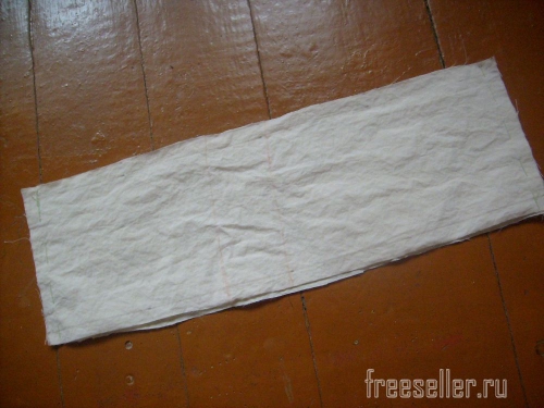 7. Выкраиваем из плащёвки обтачку верха сумки - две полоски размером 35 см на 10 см с припусками.