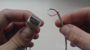 Далее берем светодиод, резистор и USB шнур и всё это спаиваем.