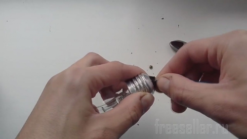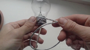 Цоколь в лампочке заливаем горячим клеем или как в моём случае можно залепить пластилином. После чего делаем подставку из проволоки, тут уже на Ваш вкус.