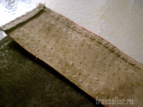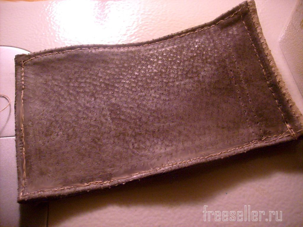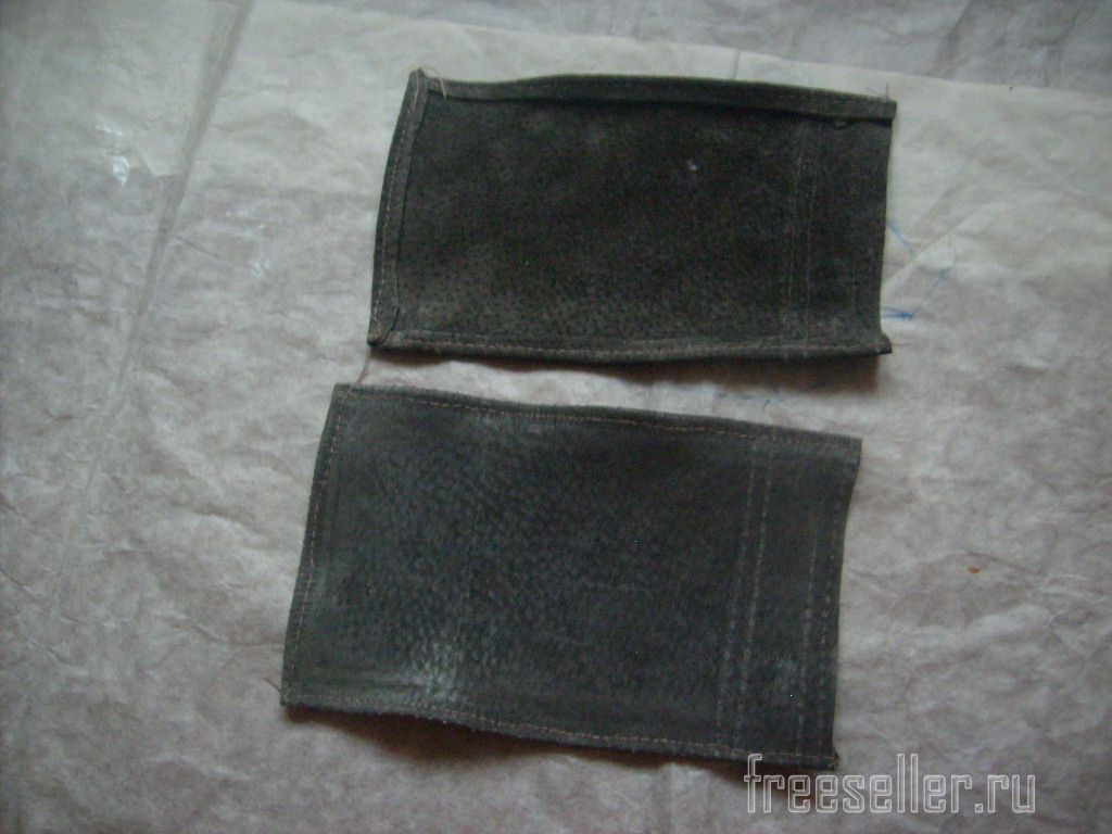 1. Выкраиваем две одинаковые детали по величине телефона. Из светлой замши вырезаем две полоски длиной с верхний край основных деталей и шириной 3 см.