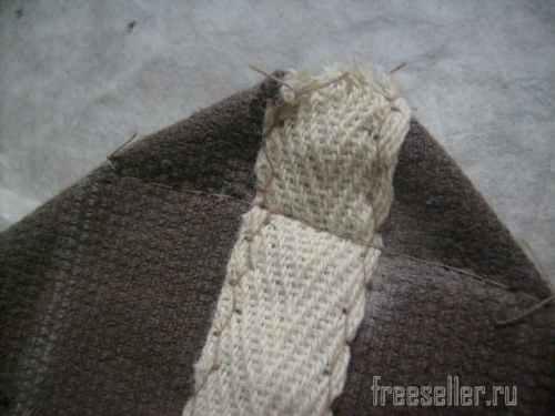 2. Складываем деталь, совмещая срезы боковых сторон. Сшиваем их.