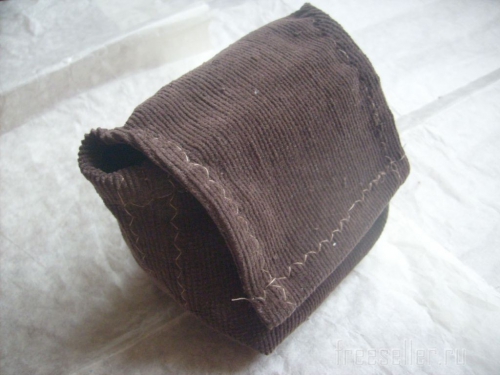 5. Дважды подгибаем срезы верха и клапана на изнанку. Пристрачиваем их зигзагом.