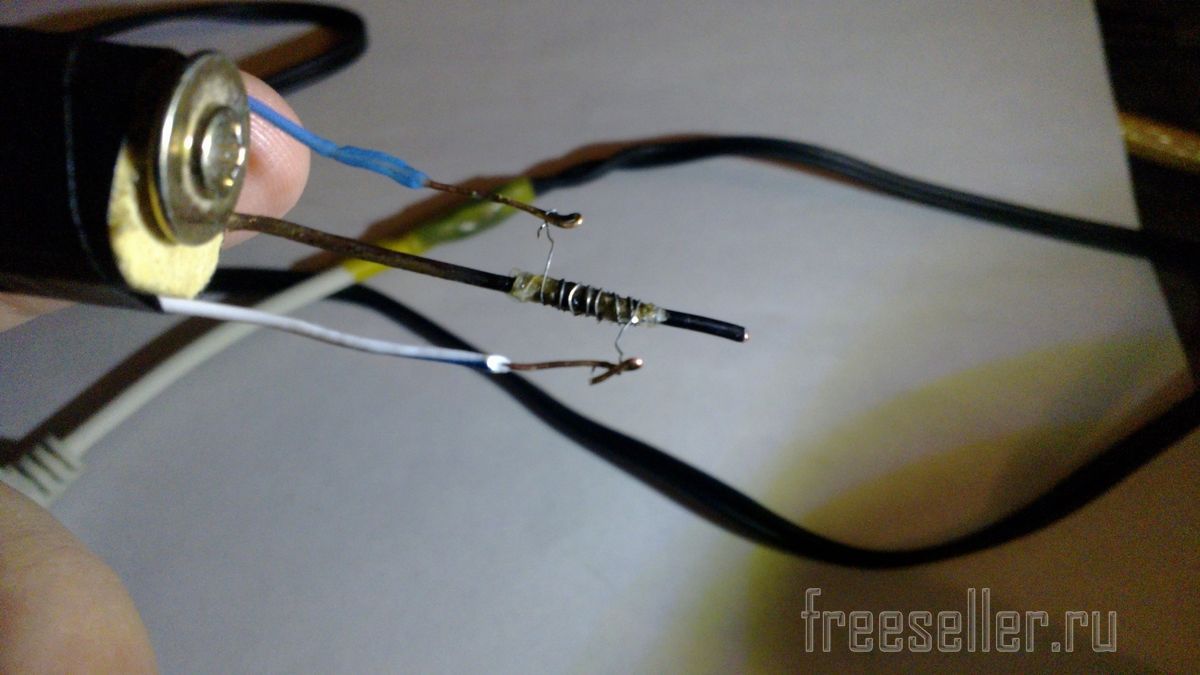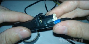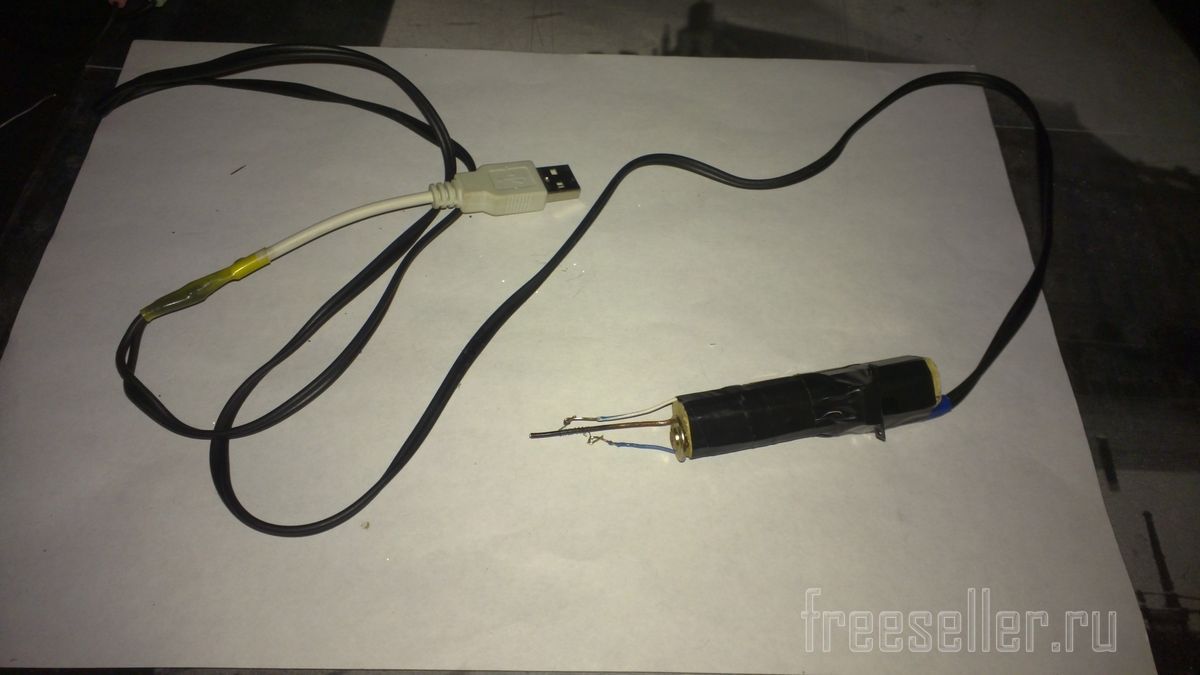 Далее берем USB штекер с проводом и соединяем с проводами. Полярность не имеет значения. Не забываем изолировать провода друг от друга перед термоусадкой места соединения проводов.