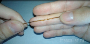 Берем нихромовую проволоку длиной 7см и наматываем по спирали(по плотнее, но чтобы не соприкасалась между собой) на прямой конец медной проволоки, оставив рабочее место для пайки. Фото в статье делал когда не было стекловолокна под рукой. Имейте ввиду, что изоляция должна быть, хоть у меня и без нее заработало все нормально.