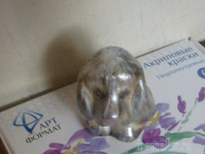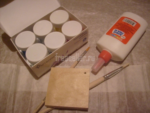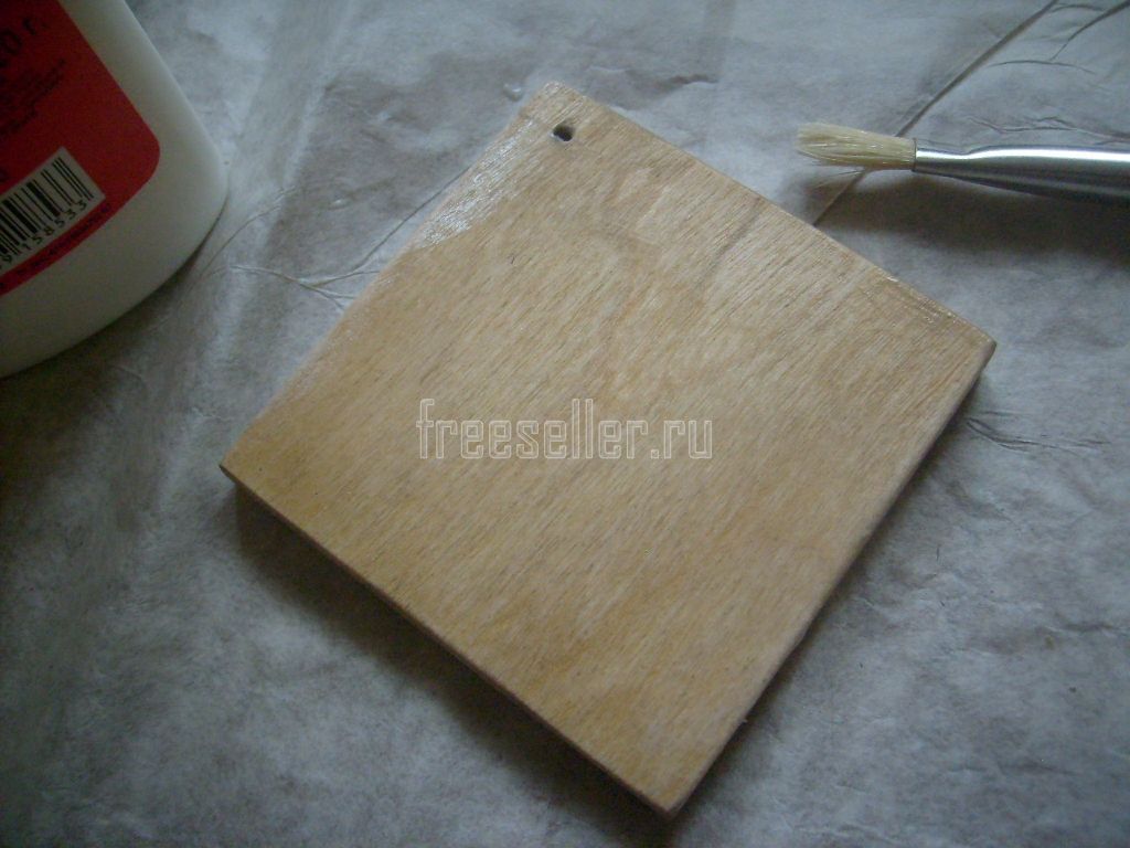 2. Грунтуем дощечку клеем. Оставляем её сохнуть.