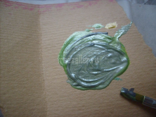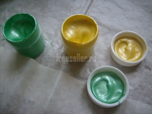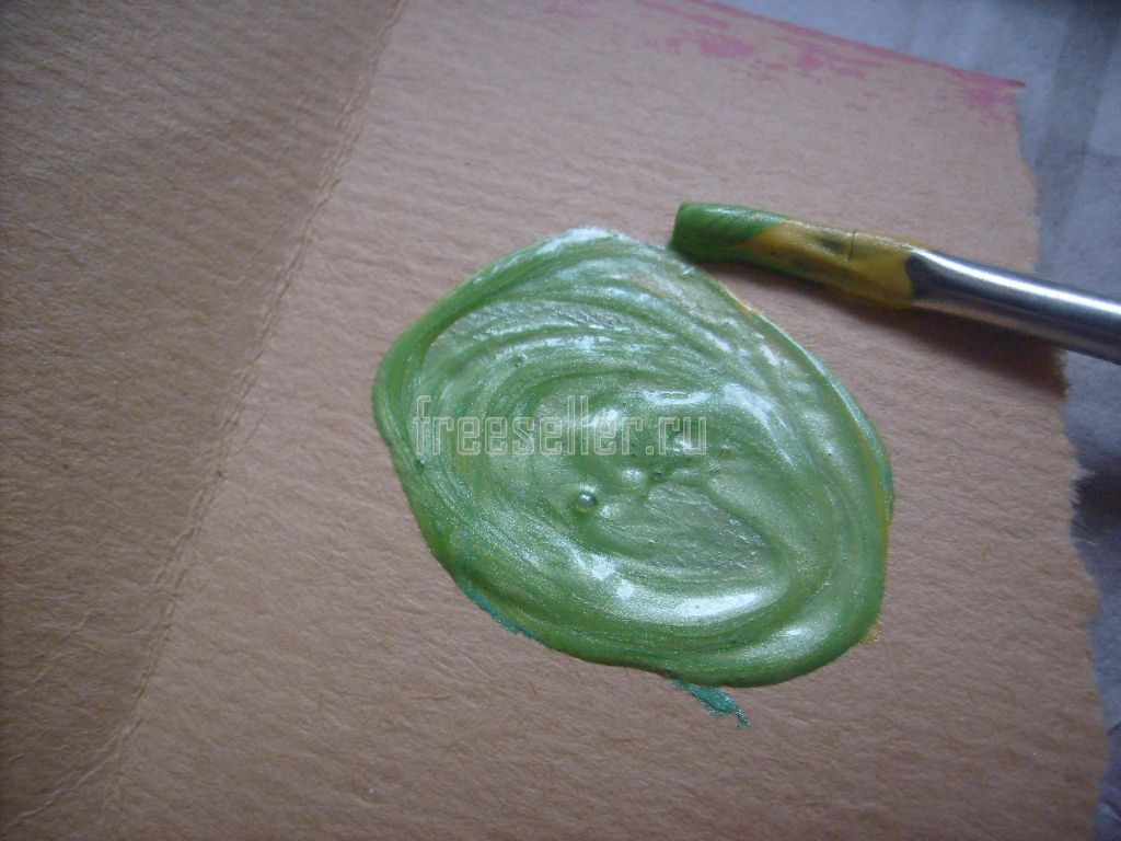 5. Смешиваем немного зелёной краски с жёлтой (поровну).