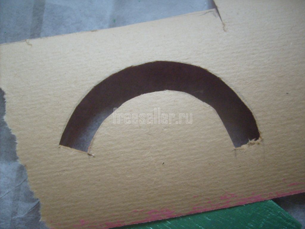 8. На плотной бумаге вычерчиваем дугу по размеру дощечки и шириной 1 см. Вырезаем её.