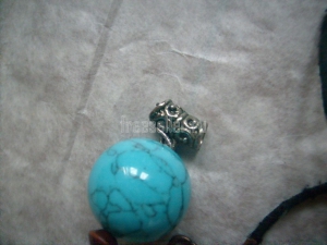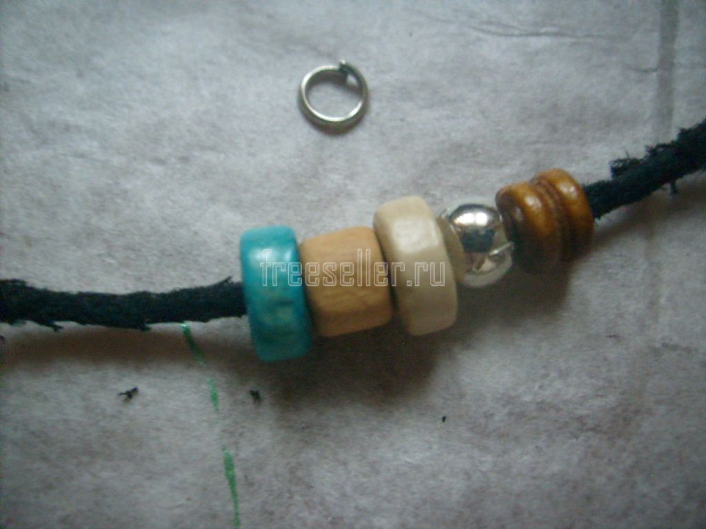 3. Надеваем на шнур центральный элемент - бейл с бусинами.
