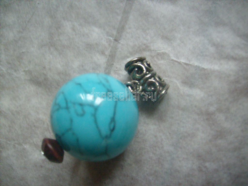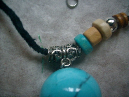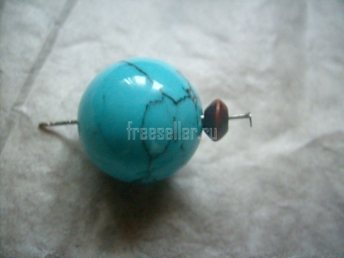 1. Нанизываем на гвоздик мелкую деревянную бусинку и большую из прессованной бирюзы.