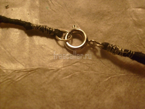 6. Крепим тонкой проволокой части застёжки к обоим концам шнура.