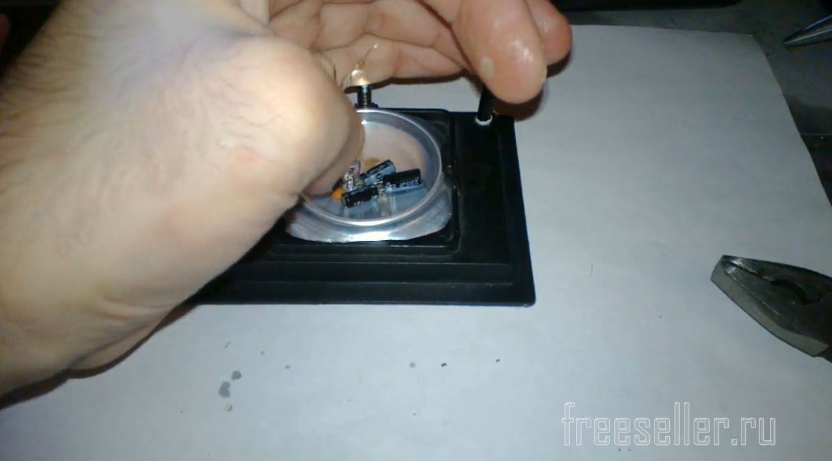 Теперь надо подобрать походящее основание для устойчивости конструкции. У меня завалялся пластиковый корпус от кварцевых настольных часов, буду его использовать.